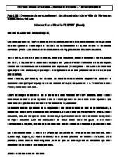 Intervention de Katell FAVENNEC au conseil municipale de Nantes le 02 novembre 2015. Comme beaucoup d’autres villes, Nantes connaît aujourd’hui des difficultés réelles en matière de sécurité et de tranquillité publique. Les derniers événements attestent d’une escalade de la violence, liée à des comportements délictueux, mafieux, dus à divers trafics. Le débat ne peut se réduire à opposer « prévention et répression ». C’est évidemment dans une approche de proximité, quotidienne, enracinée, que nous répondrons durablement à l’enjeu de la sécurité, de la tranquillité publique. Évidemment, l’éducation prend une part majeure dans cette approche. La création d’une maison de la Tranquillité Publique a vocation à parfaire les services proposés par la ville pour mieux répondre aux attentes de la population.